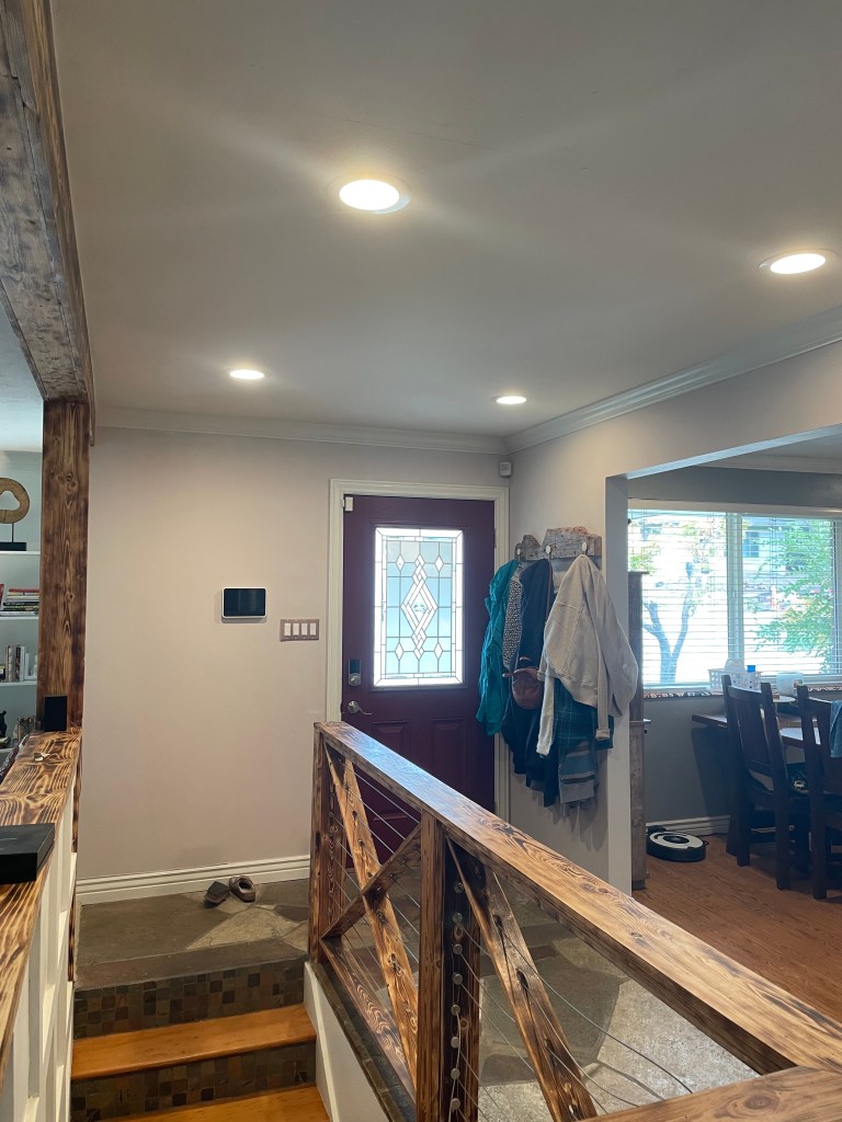 Once the cans are installed, using the light kit from Costco was pretty straightforward. We love the dimmable ones and rarely have them at 100% brightness. A little light makes a big difference.